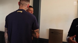法国国家队官推晒视频,5位刚刚夺得欧冠冠军的球员到国家队报到,队长姆巴佩开心大笑,与他们握手拥抱亲切互动。